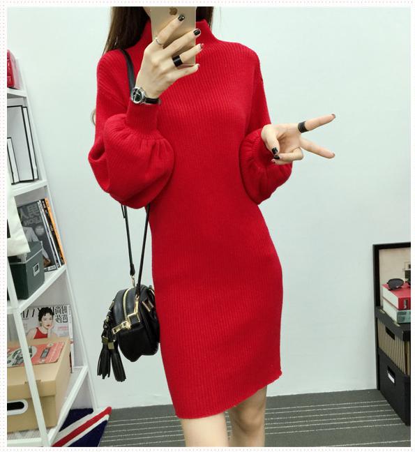 Autumn and Winter Half-high Collar Sweater Lantern Sleeve Casual Jacket Slim Knit Young Women's Top