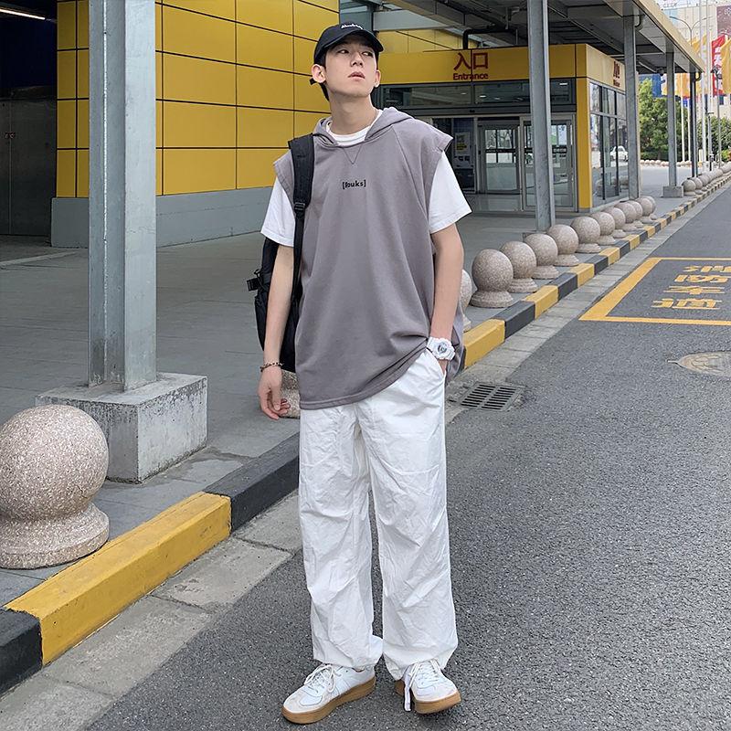Summer New Vest Men's Short-sleeved Trend Loose Hooded Students All-match Sports Sleeveless T-shirt Men