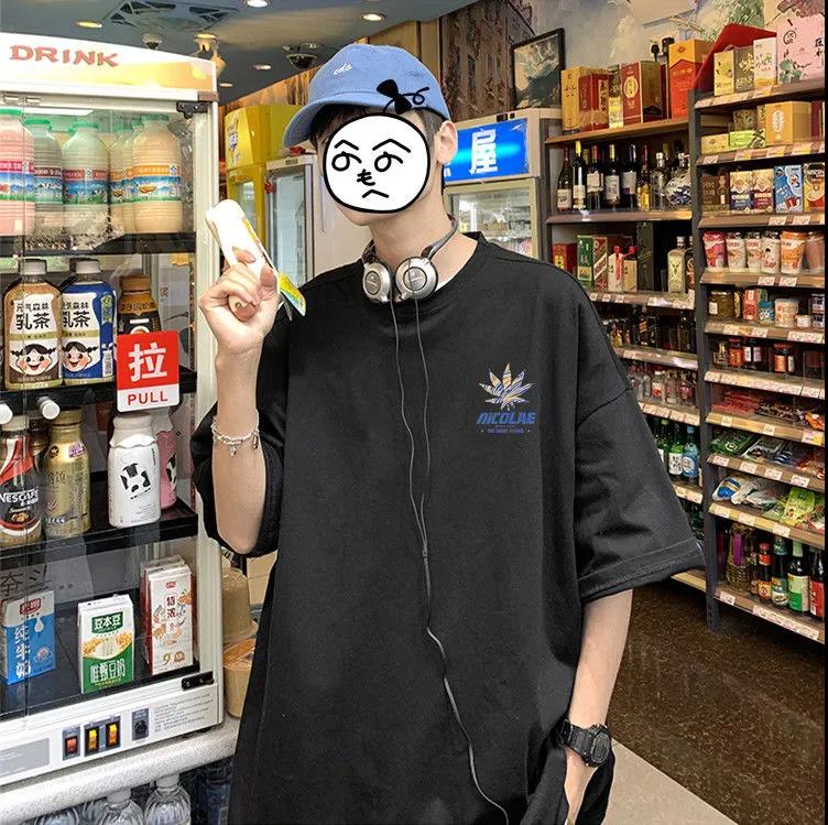 100% Cotton Short-sleeved T-shirt Men's Loose and Simple Student Summer Half-sleeved Round Neck Top