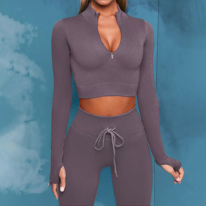 2PCS Women's Zipper Sports Underwear Fitness Long-sleeved Quick-drying Running Trousers Yoga Exercise Suit Fitness Clothes Tracksuit Active Wear