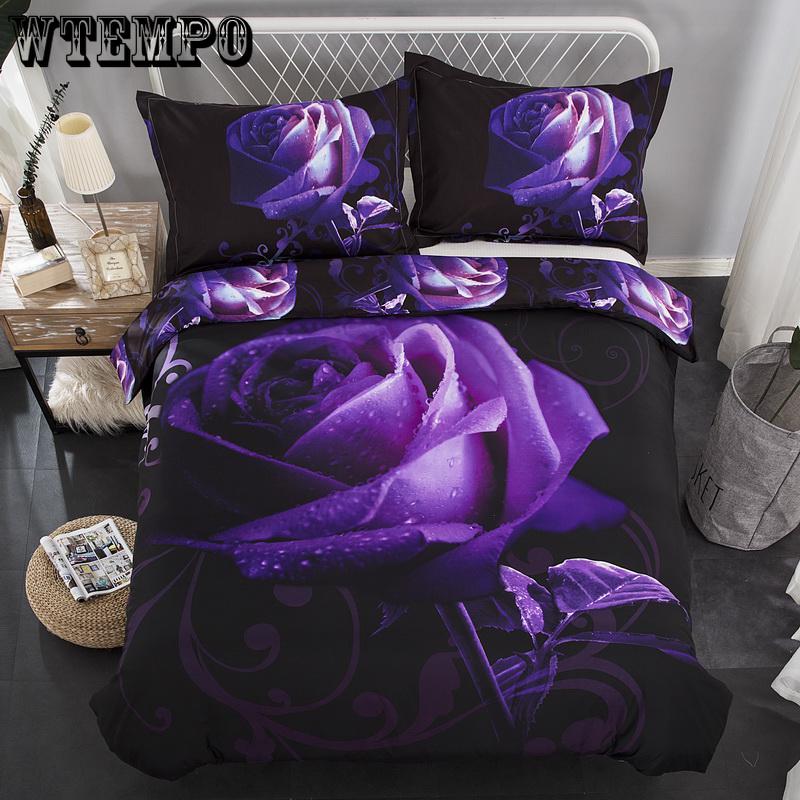3D Purple Rose Duvet Cover Set Cotton Polyester HD Bedding Set 3pcs Bedclothes