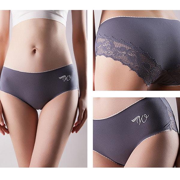 3Pcs/Set Seamless Cotton Lace Panties Women's Lace Breathable Underpants Mid-waist Graphene Crotch Briefs