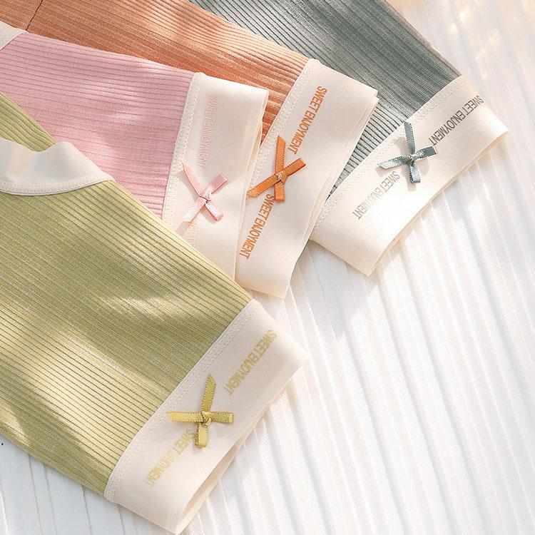 5Pcs/Set Women's Spring Summer Thin Lace Seamless Underpants Ladies Solid Color Sweet Little Fresh Mid-waist Bow Briefs