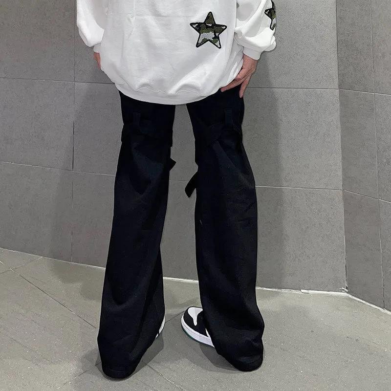 American High Street Tidal Card Gradient Straps Jeans Women Loose High Waist Wild Long Pants INS Tide