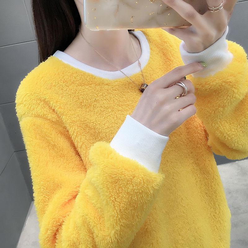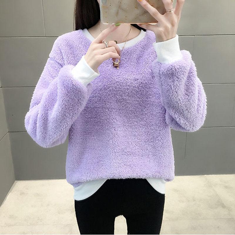 Autumn and Winter Loose Sweater Round Neck Pullover Blouse Long Sleeve Solid Color Women's Jacket