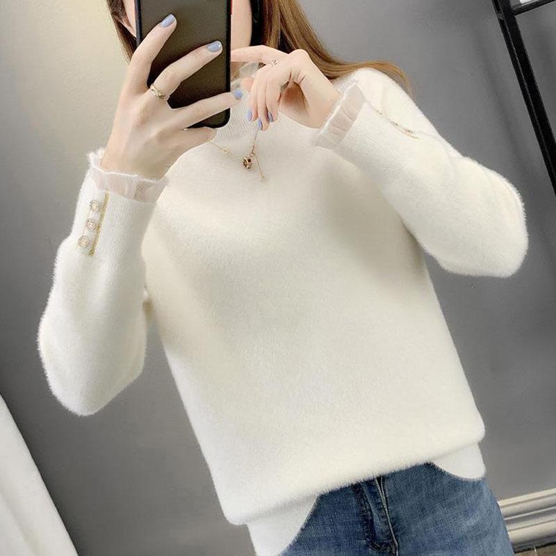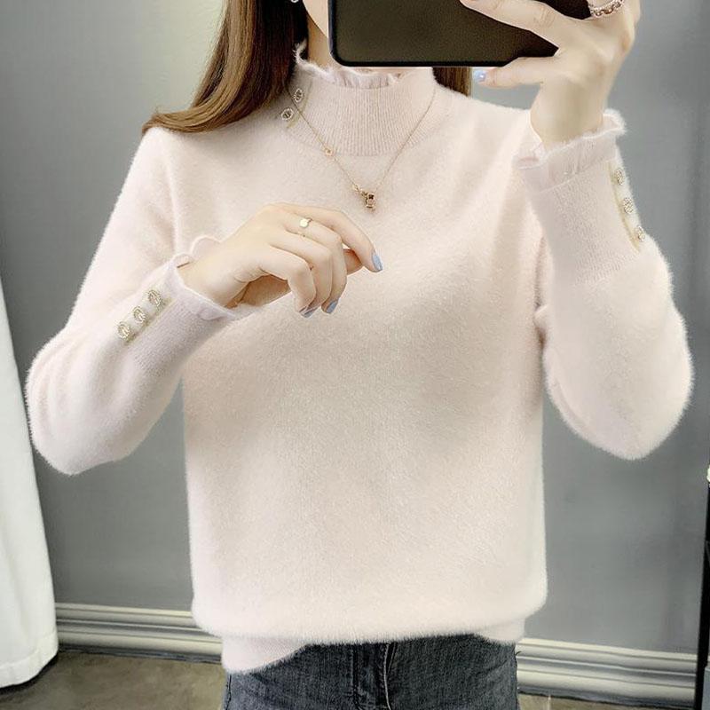 Autumn and Winter Mohair Half Turtleneck Sweater Thick Loose Solid Color Shirt Fashion Casual Women Bottoming Dress