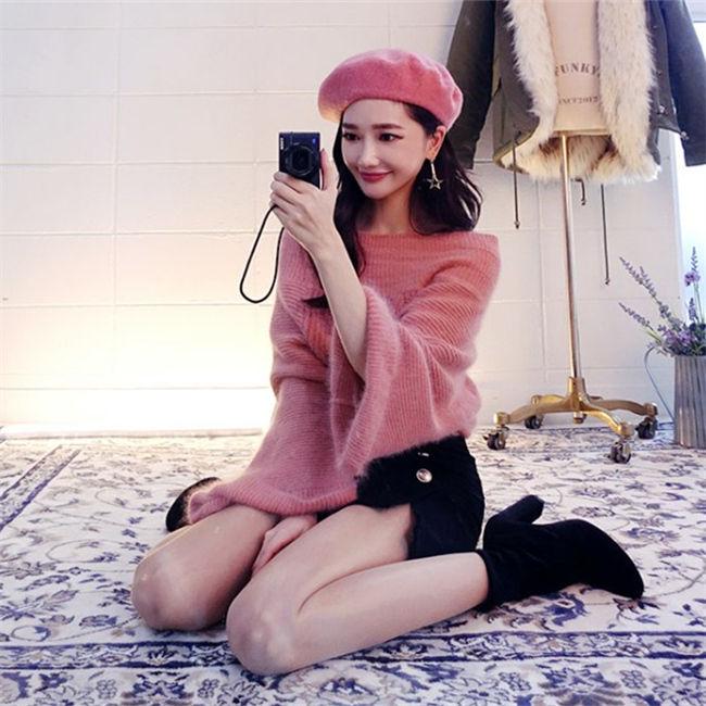 Autumn and Winter Sexy Off-the-shoulder Blouse Mink Fleece Pullover Sweater Loose Big Flared Bottoming Shirt