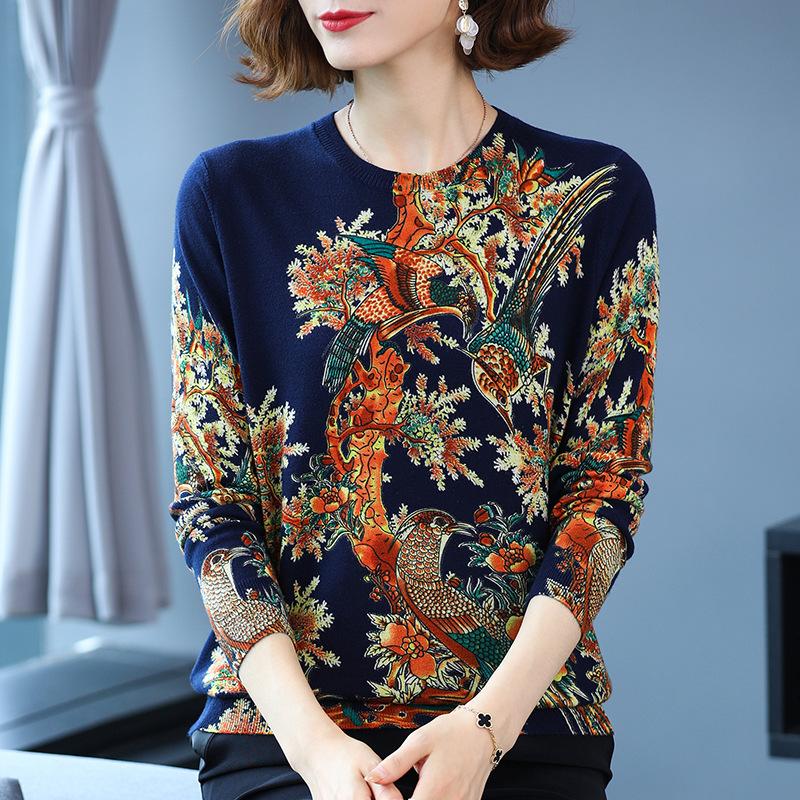 Autumn and winter women's knitted sweater cartoon print sweater round neck pullover long sleeve bottoming shirt loose fashion