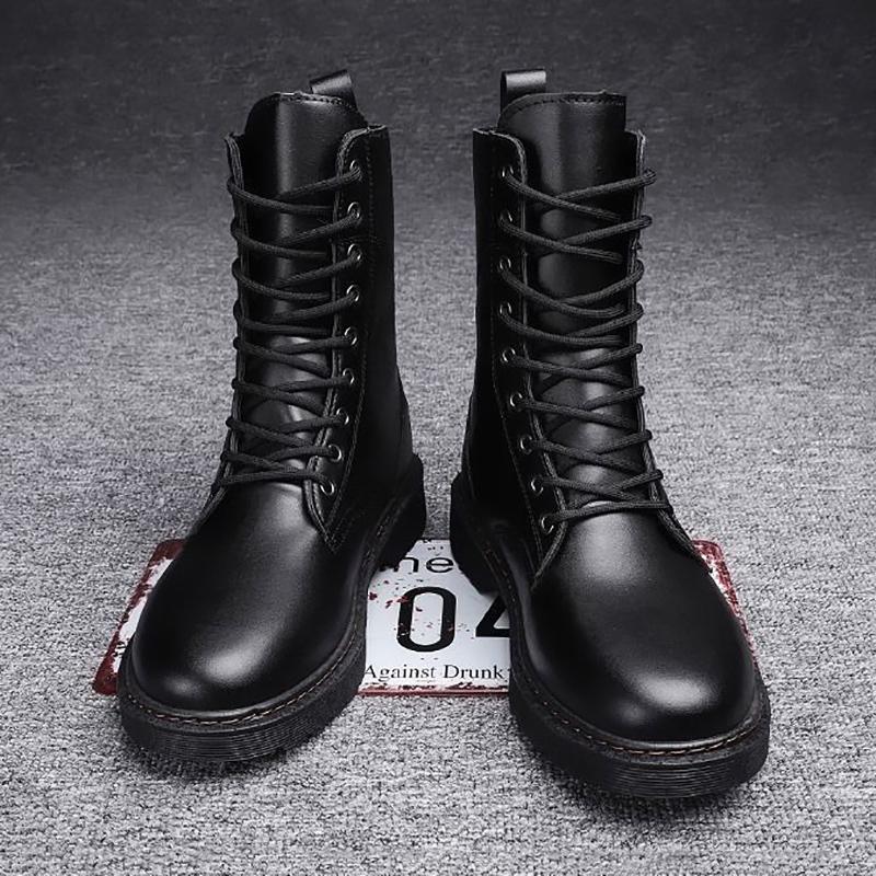 Autumn High-top Cowboy Boots All-match Outdoor Martin Boots Men's Casual British Tooling Leather Boots Men's Lace-up Black Handsome Motorcycle Boots
