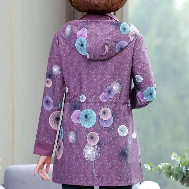 Autumn Mother Wear Jacket Middle-aged and Elderly Fashion Printing Detachable Hooded Mid-length Windbreaker Women