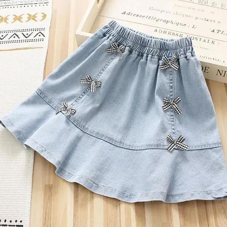Autumn Spring Summer Casual Girls Summer Thin Denim Skirt Korean Bowknot Short Skirt Pleated Skirt Ruffle Denim Skirt