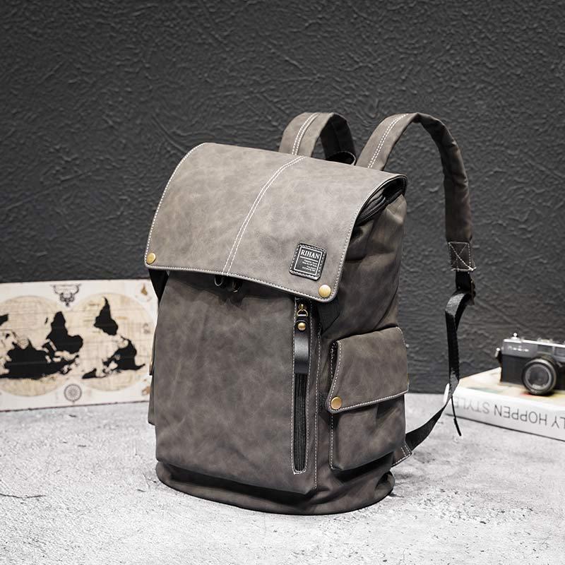 Backpack Men Gray Large Capacity Flip Dark Buckle Waterproof Student Computer Bag Sports Travel Bag