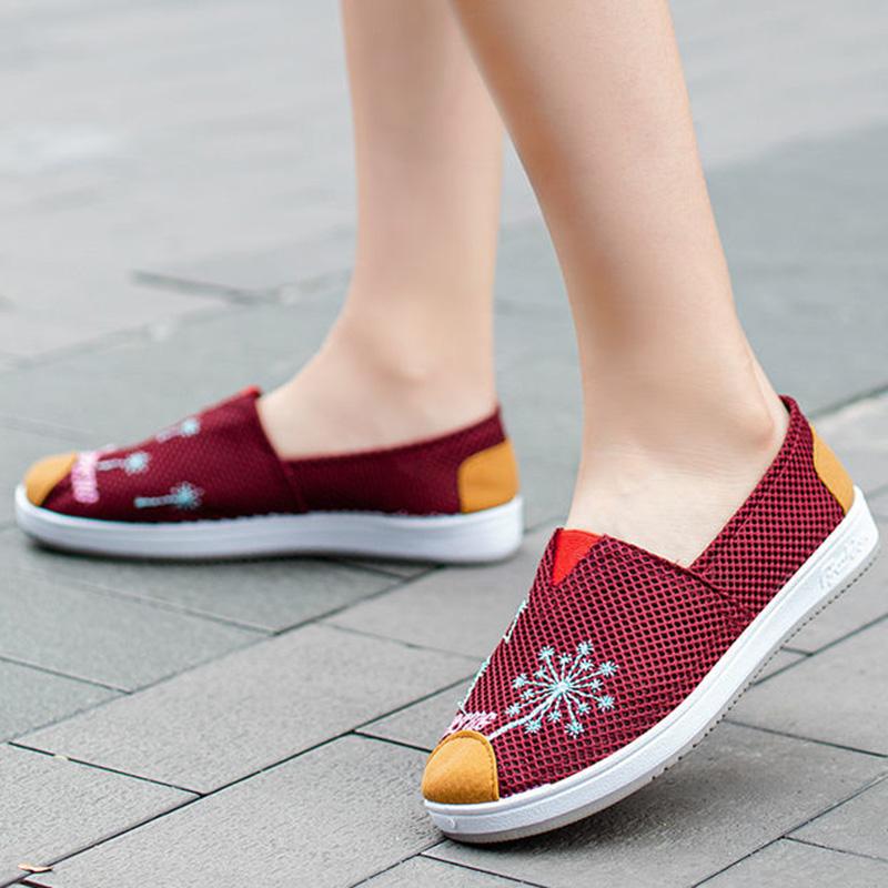 Breathable Net Shoes Women's Low-top Breathable Women's Single Shoes Flat Bottom One-step Embroidered Shoes Ladies Soft Bottom Wear-resistant Leisure