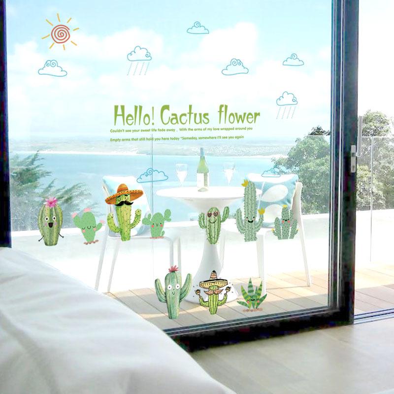 Cactus fresh sticker bedroom living room window decoration smiling plant wall stickers