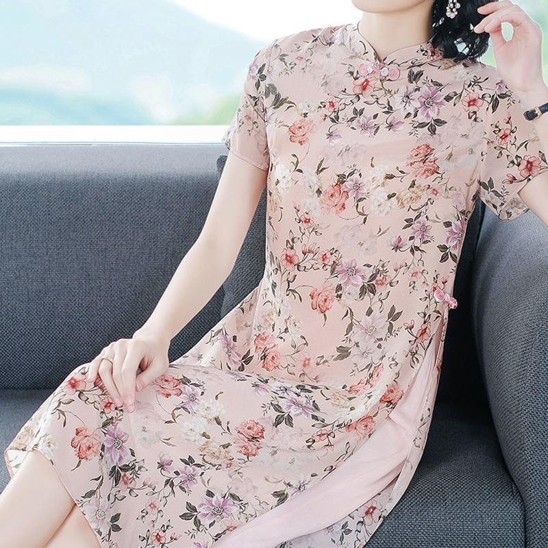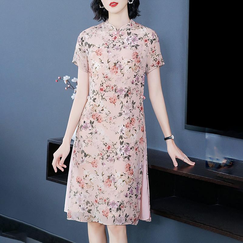 Chiffon Dress Women's Spring and Summer Retro Improved Young Style Cheongsam Chinese Style Skirt
