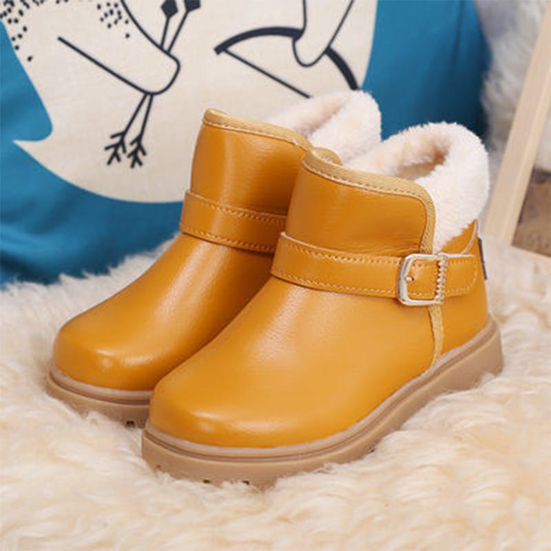Children's Cotton Shoes Plus Velvet Padded Snow Boots Waterproof Non-slip Leather Boots Boys and Girls Large Cotton Warm Shoes