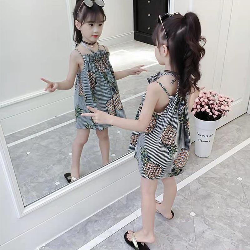 Children's Dress Girl's Suspender Dress Korean Version of Printed Fruit Striped Dress Backless Beach Princess Dress