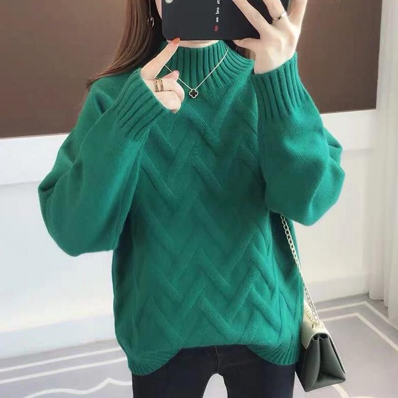 Cold-proof Solid Color Turtleneck Sweater Female Autumn Large Size Warm Sweater Thickening
