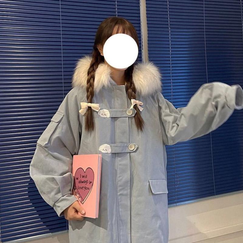 College Style Embroidered Cute Gray-blue Mid-length Cotton-padded Jacket Female Student