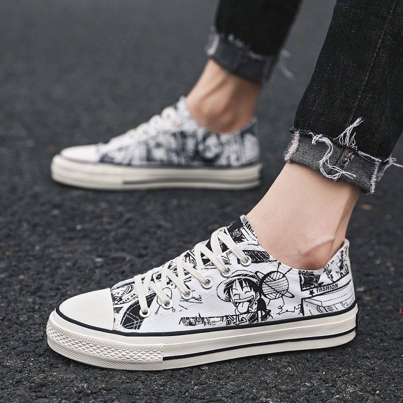 Comic canvas shoes men's high-top shoes trend graffiti white shoes casual student sneakers