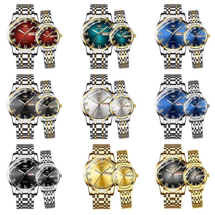 Couple Waterproof Steel Strap Dual Calendar Round Dial Quartz Watch High-end Men Women Jewelry Watch