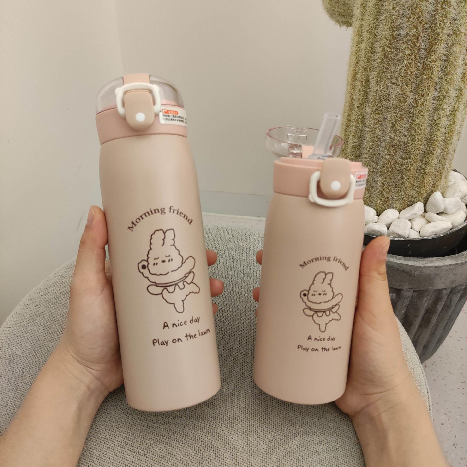 Cup Ins Male and Female Students Korean Version of Cute Household Anti-fall High-value Large-capacity Straw Thermos Cup