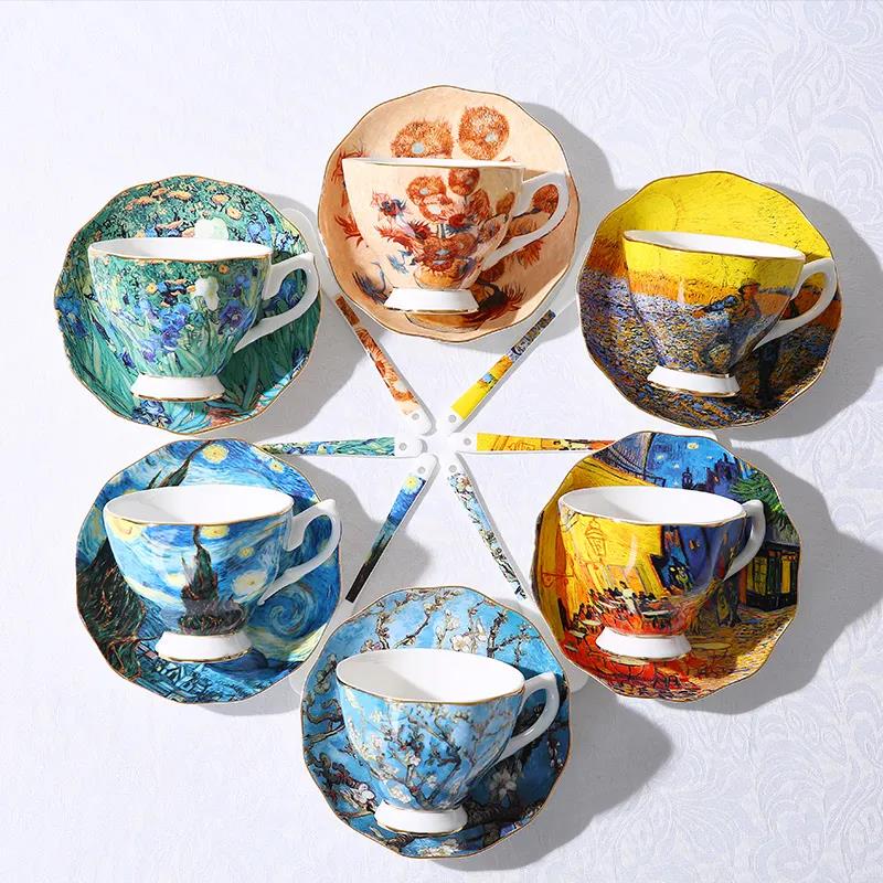 European-style Small Luxury Coffee Cup, Ceramic Mug, Gold Home Tea Cup, Drinking Cup, Creative Gift Box Set for Men and Women