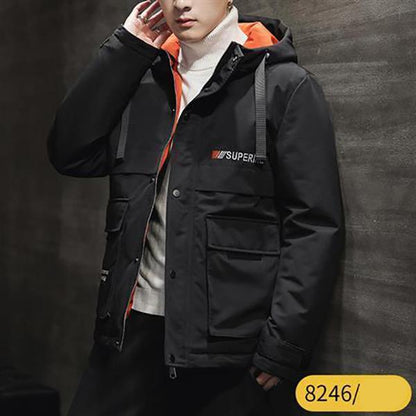 Fashion Men's Jacket Winter Thickening Warmth Matching Hooded Down Padded Jacket