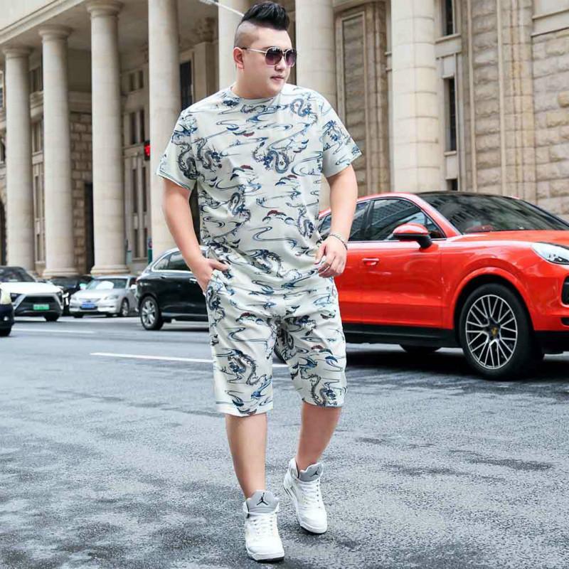 Fat Short-sleeved Short-sleeved Suit Male Fat Sports Suit Plus Size Men's Suit Plus Fat Casual Suit Plus Size