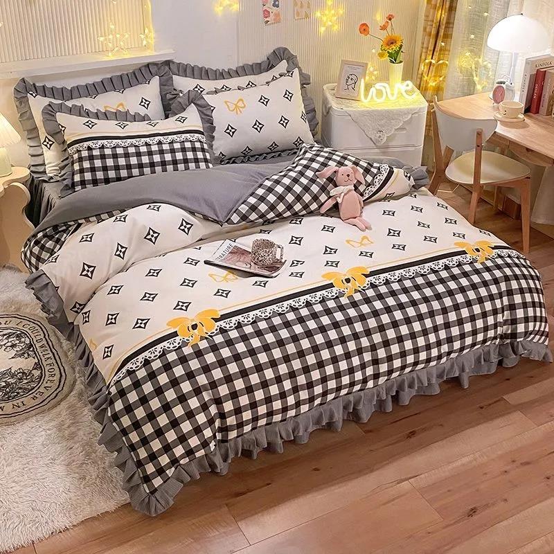 Four-piece Korean Princess Style Cotton Brushed Bed Sheet Quilt Cover Sheet Couple Double Bedroom Bedding