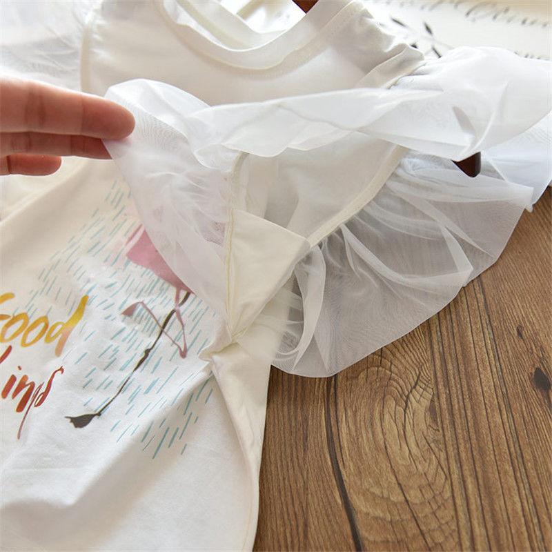 Girls Animal Print T Shirt Girl Tee Clothes Children Cartoon Top Kids Korean Style Solid Color Breathable Flamingo Loose T-shirt For Girl