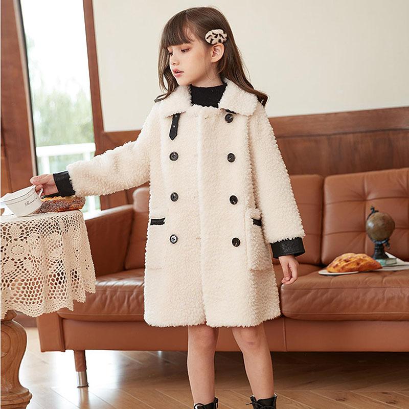 Girls Lamb Wool Coat Children's Coat Granular Velvet Warm and Windproof Plus Velvet Thick Autumn and Winter Clothes