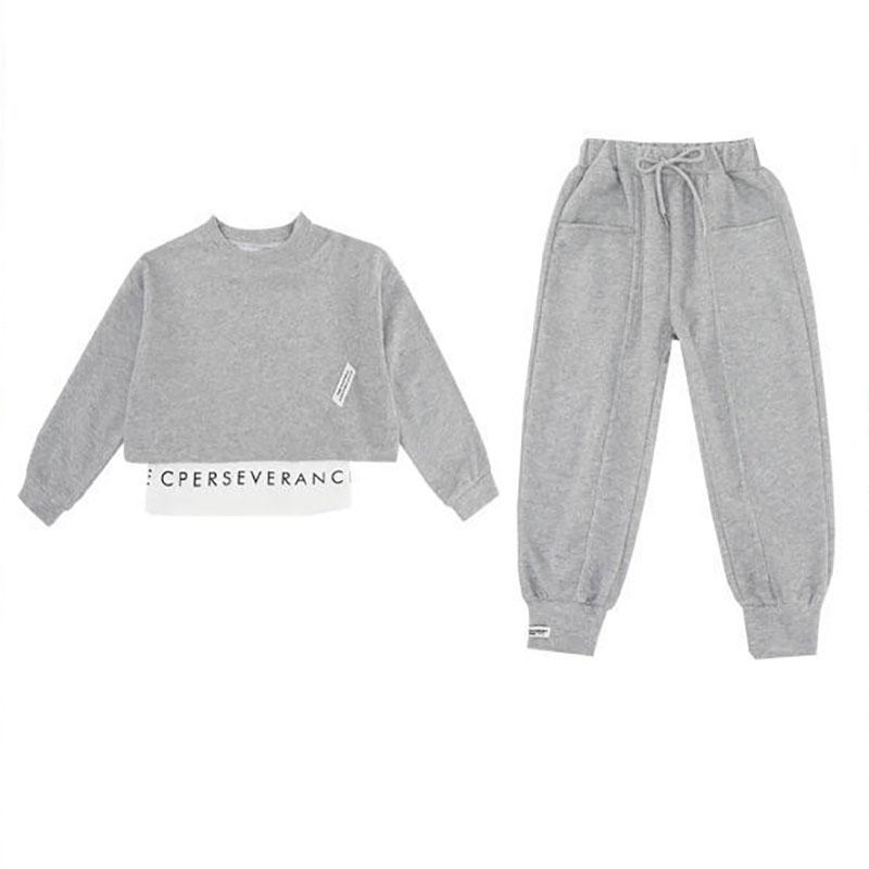 Girls' Spring and Autumn Suit Children's Leisure Suit Sports Sets Sweater Fake Two Pieces Solid Color Loose Two Pieces