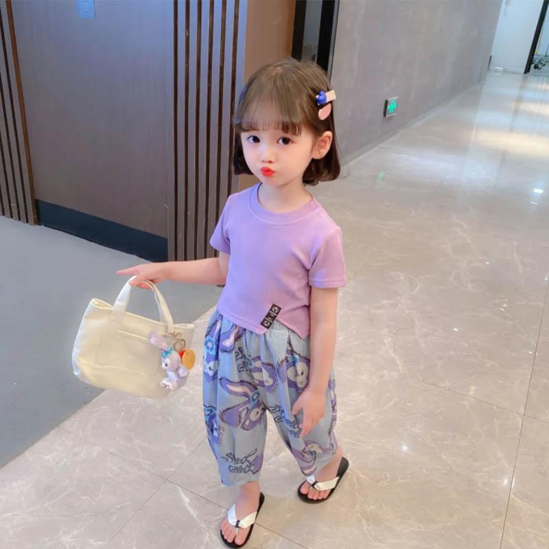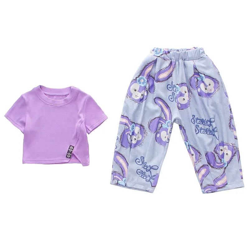 Girls Suit Breathable Summer Dress Short-sleeved Cartoon Print Casual Cute Loose Trousers Two-piece Set