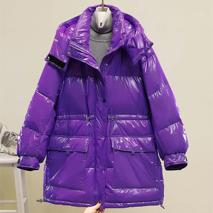 Glossy Disposable Down Jacket Women's Mid-length Loose Waist Bread Jacket