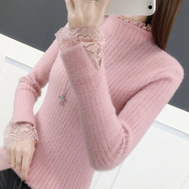 Half-high Collar Mink Velvet Women's Sweater Bottoming Shirt with Autumn and Winter Tight-fitting Sexy and Thin Korean Women's Top Sweater