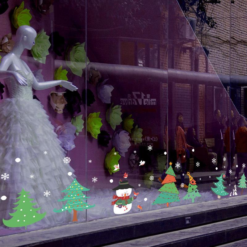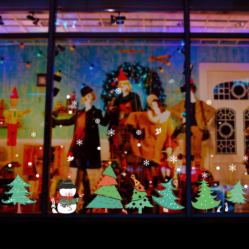 Happy Christmas tree wall stickers living room bedroom window glass door decorative wall stickers