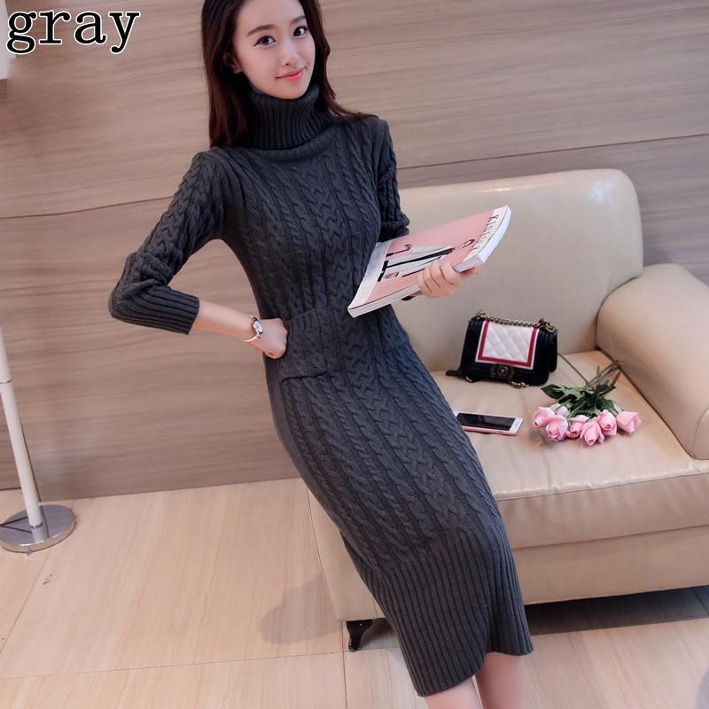 High Neck Long Sweater Autumn and Winter Over The Knee Retro Slim Bottoming Shirt Fashion Knitted Dress