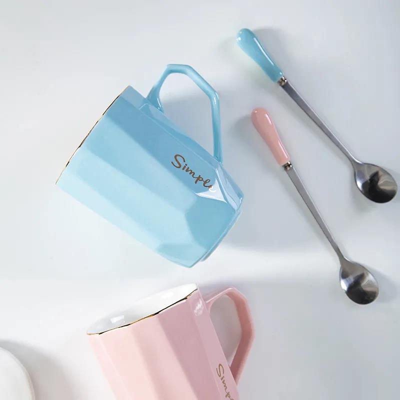 High-value Water Cup Female Student Mug Simple Coffee Cup Office Ceramic Cup with Lid Cup Home