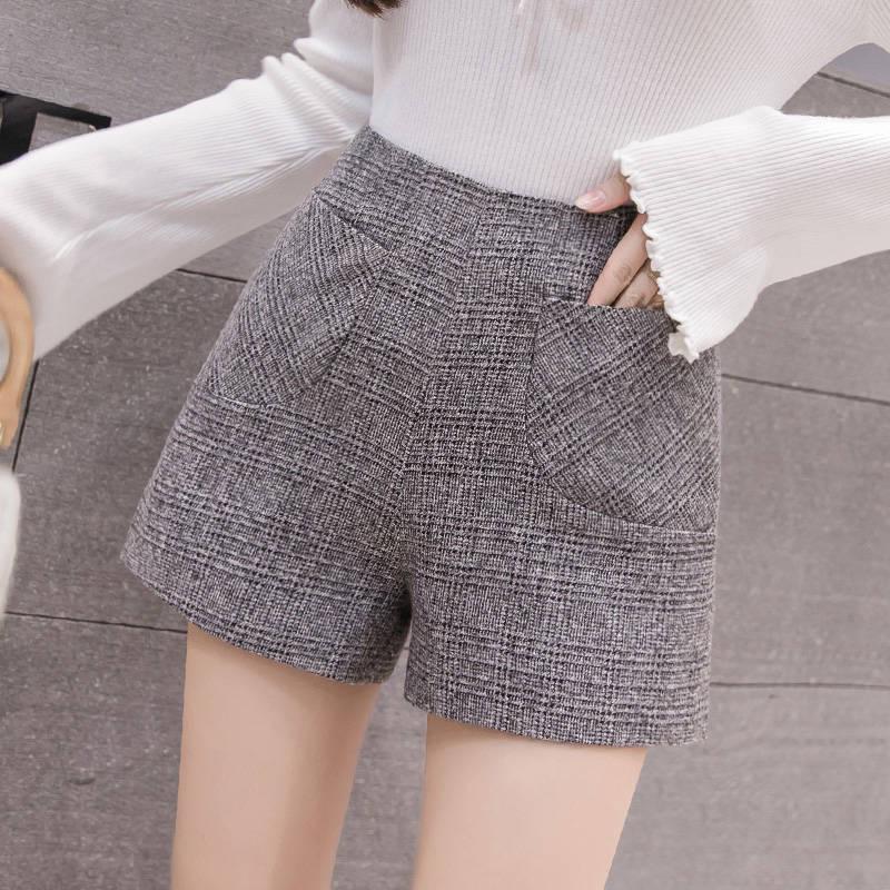 High Waist Wide Leg Shorts Ladies Elegant Woolen Shorts Women Wool Shorts