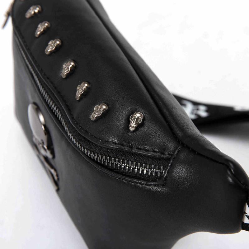 Hip Hop Waist Bag Men Black Waterproof Rivet Crossbody Outdoor Sports Travel Shoulder Bag
