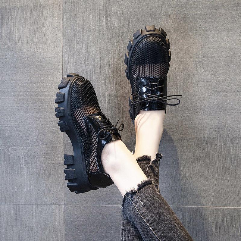Hollow Mesh Single Shoes Women's Platform Platform Shoes Thick Heels Korean Style Breathable Summer Casual Work Women's Shoes