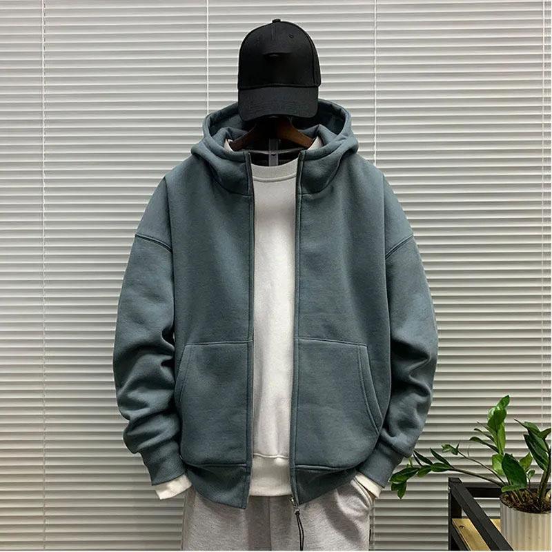 Hoodie Men's Jacket Korean Version Loose Spring and Autumn Solid Color Sweater Cardigan All-match Top Coat