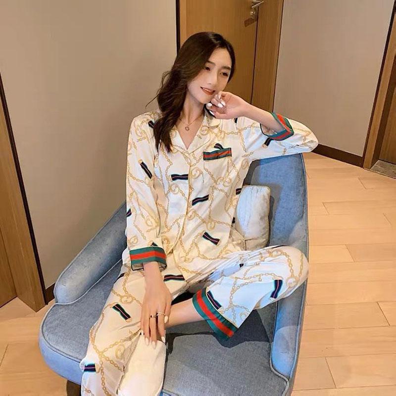 Imitated Silk Long-sleeved Trousers Women's Pajamas Sexy Korean Version Plus Fat Home Service Suit