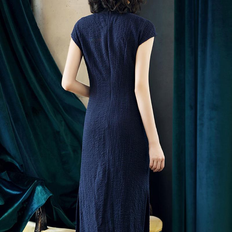 Improved Version of Cheongsam Female Summer Retro Chinese Style Long Skirt Summer Cover Belly Hidden Meat Solid Color Dress Mid-length