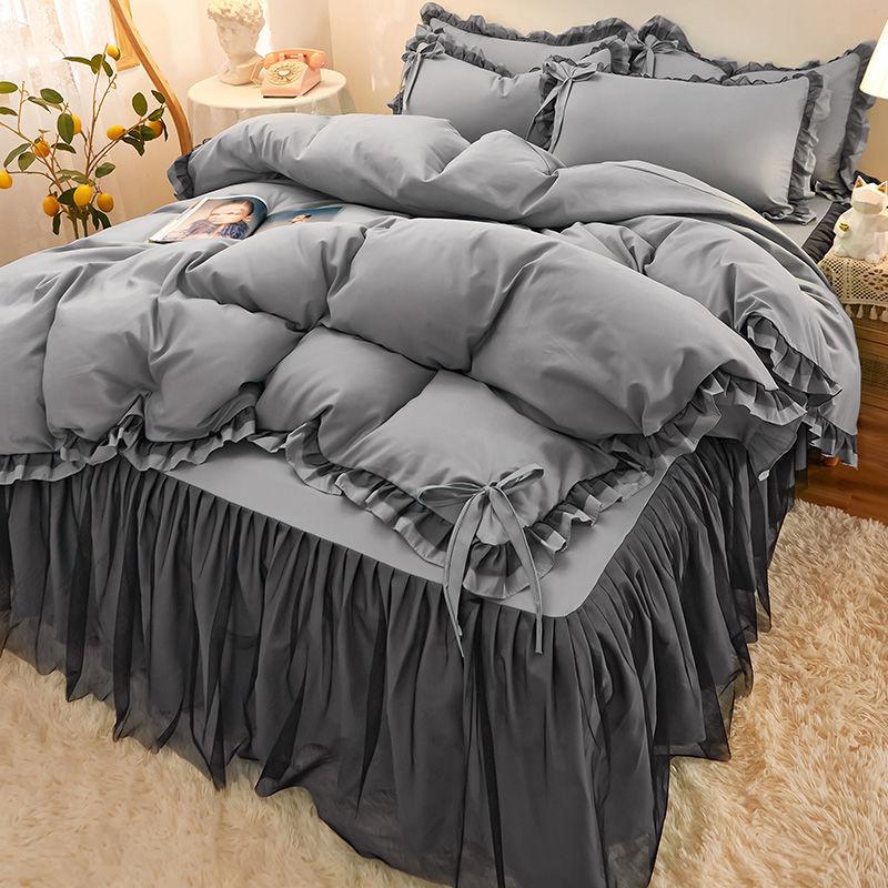 4pcs: 1 * Quilt cover+1 *Bed skirt+2*Pillow case