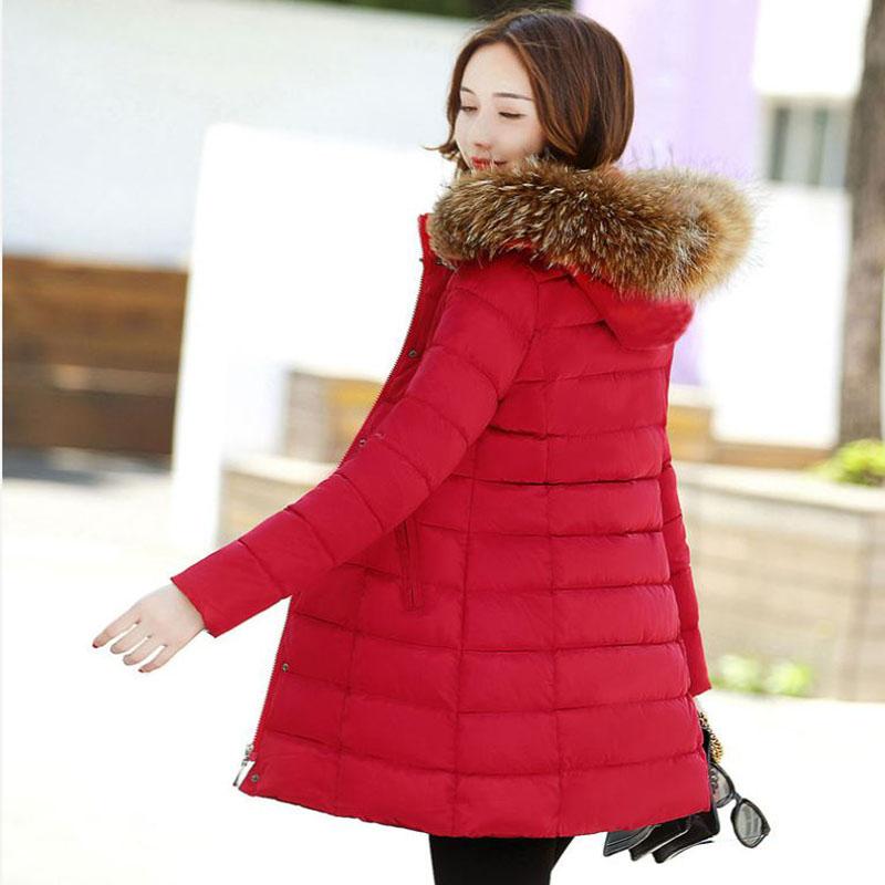 Ladies Down Jacket Winter Fashion Big Fur Collar Hooded Jacket Thick and Cotton Warm Mid-length Jacket