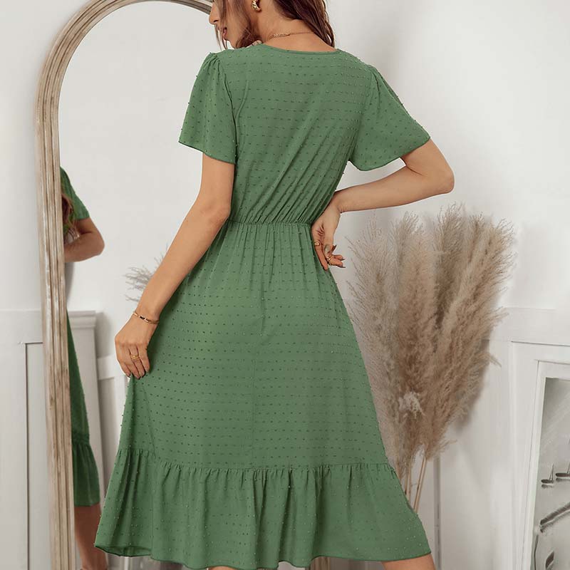 Ladies Solid Color Dress Summer Women's Sexy Vacation Big Skirt V-Neck Lace Long Dress