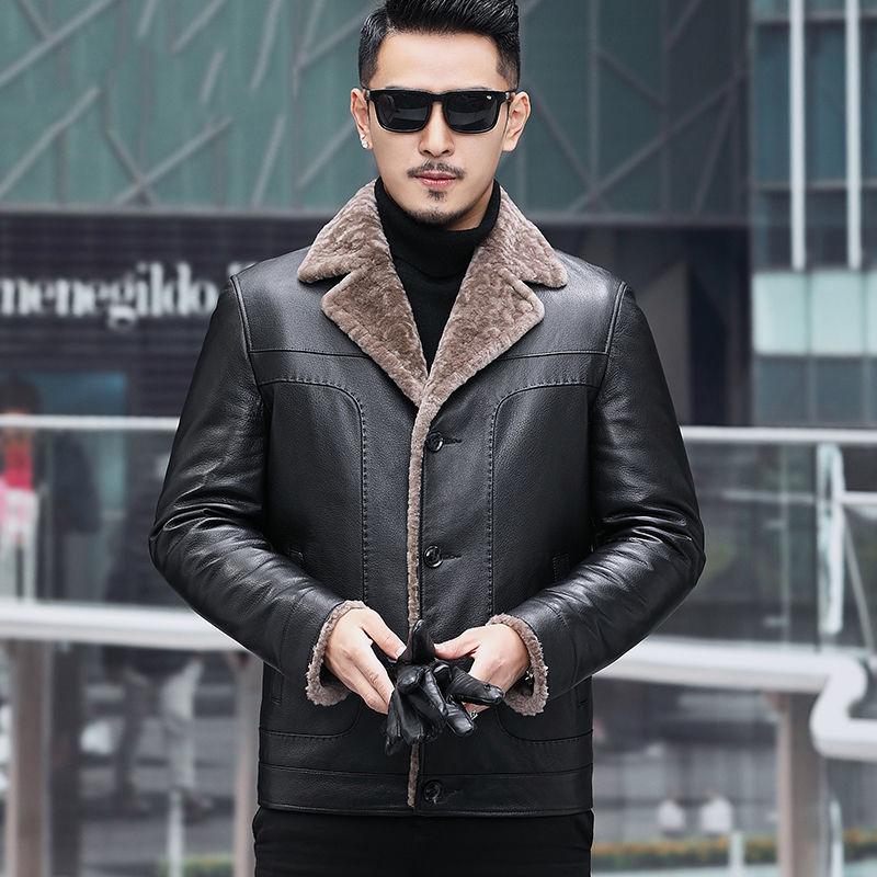 Leather Men's Jacket Plus Velvet Thickening Young and Middle-aged Fur Coat Winter Leather Jacket Large Size