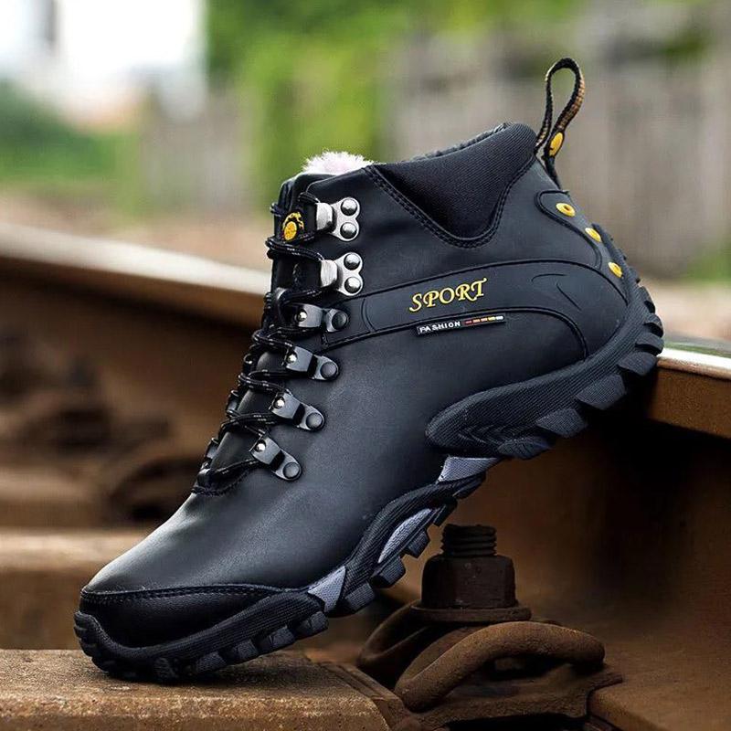 Leather Outdoor Winter Shoes Cotton Boots Men's Snow Boots Winter Plus Velvet Warm Leather Shoes Winter High-top Shoes